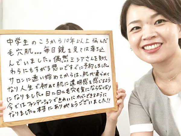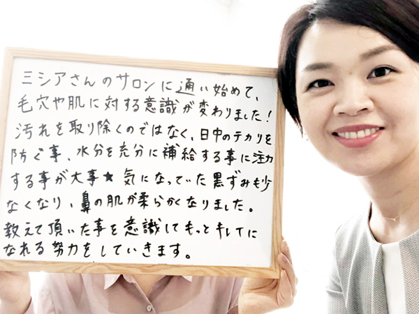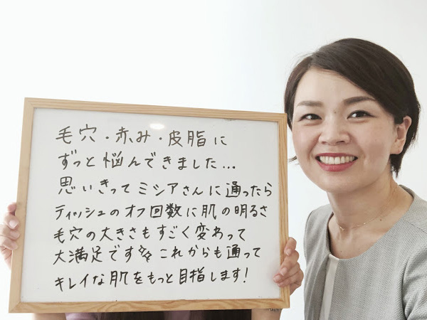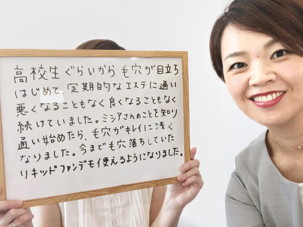 ミシアさんに通い始めてから初めて毛穴の悩みが改善しました!